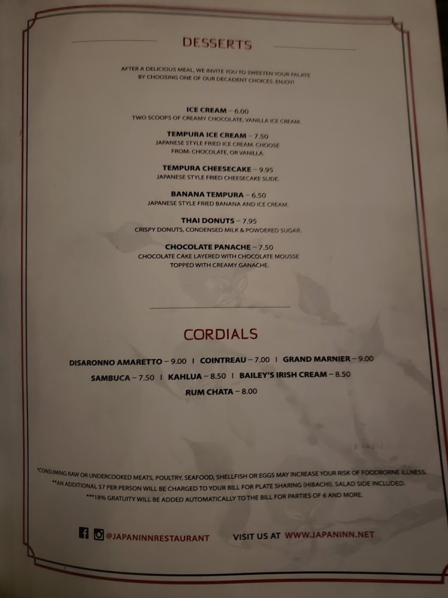 Clear soup, miso soup, or salad. Rolls: Alaska, Crispy Crunch, Happy Roll, Fuji, Sakura.